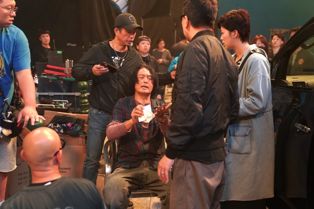 喊cut後發哥用手撳着頭頂,自行走出片場並坐底,數條血跡從佢額頭流至臉頰,呢個時候工作人員先驚覺佢受咗傷,大家都紛紛大為緊張並湧至發哥面前查看同詢問傷勢。