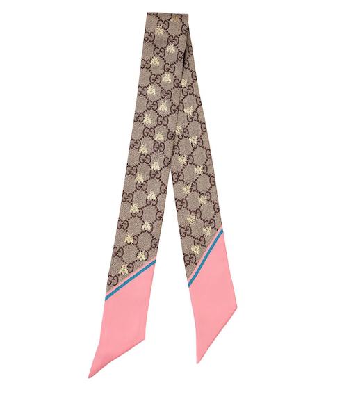 今季好興用絲巾配搭唔同衫,想貴氣一啲當然揀GUCCI圖案絲巾啦~四邊印上粉紅色,貴氣中帶點浪漫少女味!