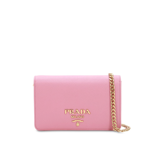 PRADA粉紅色經典手袋長年不敗,粉紅加上金色金屬配件散發少女味,用嚟襯碎花裙一流!