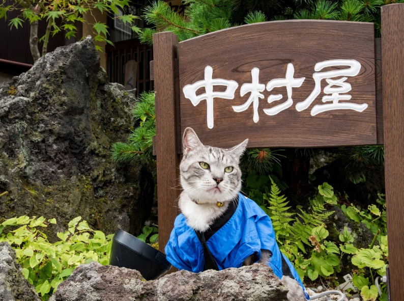 位於東京的不遠處,在著名的草津溫泉有家旅館,一共有4隻貓貓,這裡貓貓才是主人,會穿上傳統的溫泉旅館服飾,做迎賓的工作。貓貓的樣子相當有氣勢,真的有主人的樣子呢!
