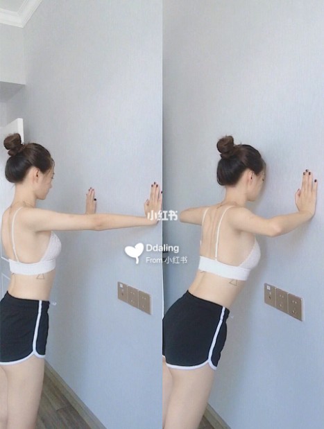 首先身體背靠牆站立,然後胳膊自然彎曲,手臂呈W字型狀態~然後用肩膀發力將手臂向外推,過程入面背部、肩膀以至手臂都要緊貼牆壁,成個動作重覆20次~