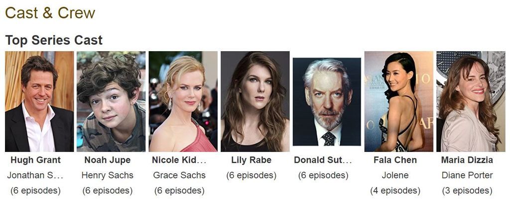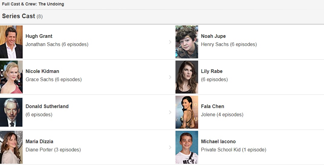 網路電影資料庫(IMDb)顯示,HBO新劇《The Undoing》係有6集嘅迷你劇,而飾演Jolene嘅法拉會參與4集演出。