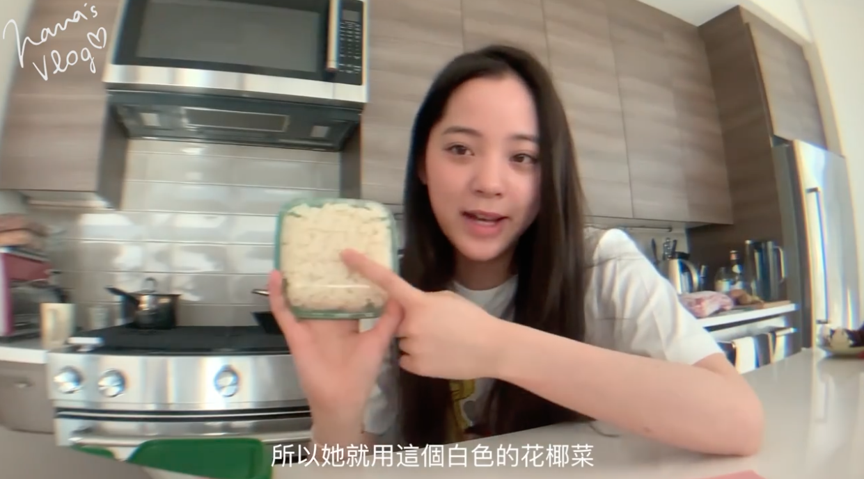 娜娜天生美人一名,臉雖然有點baby fat但身型也是偏瘦的,為了控制攝取碳水化合物,她以椰菜花代替白飯,製作低卡路里炒飯,18歲的她已經懂得注意飲食~我18歲時還在每天啃麥當當呀~