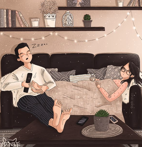 一段美好的愛情對不同人來說都不一樣,有人覺得浪漫和激情很重要,有人卻覺得細水長流的平淡愛情最好,但不論是哪一種愛情,真正的幸福不外乎靜靜地待在彼此的身邊,就算不說話也不會覺得突兀,反而能自然舒服地相處,紐約插畫家Dina Odess的筆下,把這種美好完美地呈現出來!