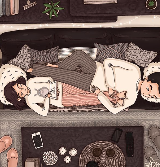 紐約插畫家筆下的戀人日常:幸福就是靜靜待在彼此的身旁,不說話也很舒服~