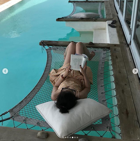 去旅行都不忘閱讀的依晨~