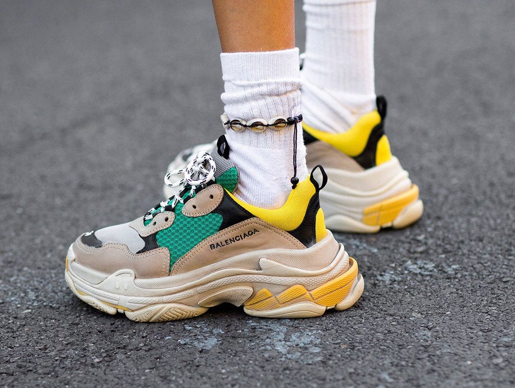老爹鞋復興之手非法國時裝品牌Balenciaga莫屬。品牌創意總監Demna Gvasalia早喺2017年秋冬男裝系列上推出復古鞋款「Triple S」,濃厚嘅8、90年代復古感,搭配上仿舊嘅拼接色塊同超厚鞋底,鞋頭仲繡有鞋碼嘅標誌,於當時造成一波搶購風潮,風頭一時無兩,可以話係一鞋難求啊~