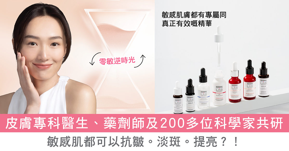 新加坡醫學護膚品牌DERMA LAB與你一同告別初老敏感肌無助感,立即開始用你第一支專門為敏感肌膚而研發的高效能性精華。Photo from DERMA LAB