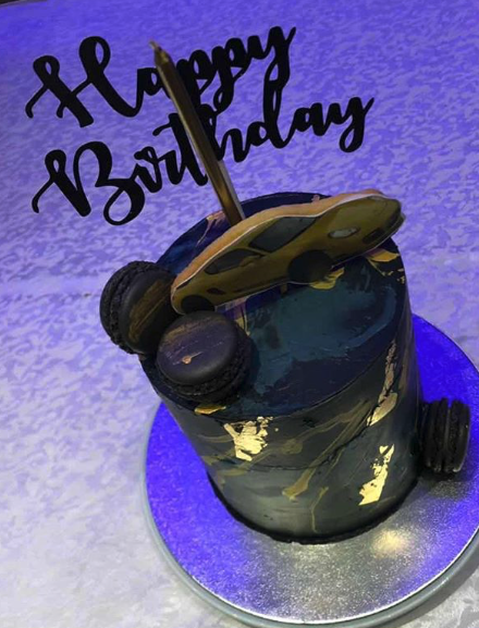 城城嘅53歲慶生派對場面非常熱鬧,生日蛋糕上刻上城城英文名,仲鑲嵌咗「皇冠」、「珍珠」等飾品,連同另一個「跑車蛋糕」唔知係咪太太精心準備呢?