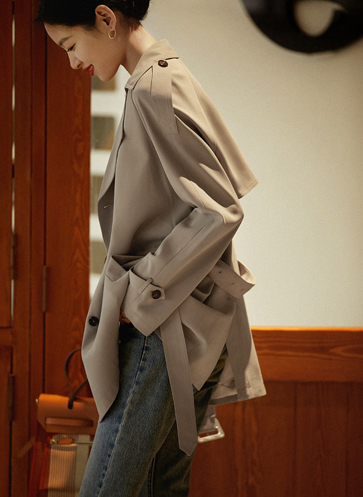 美編心水爆品:輕熟日系米灰色調顯瘦春季風衣外套