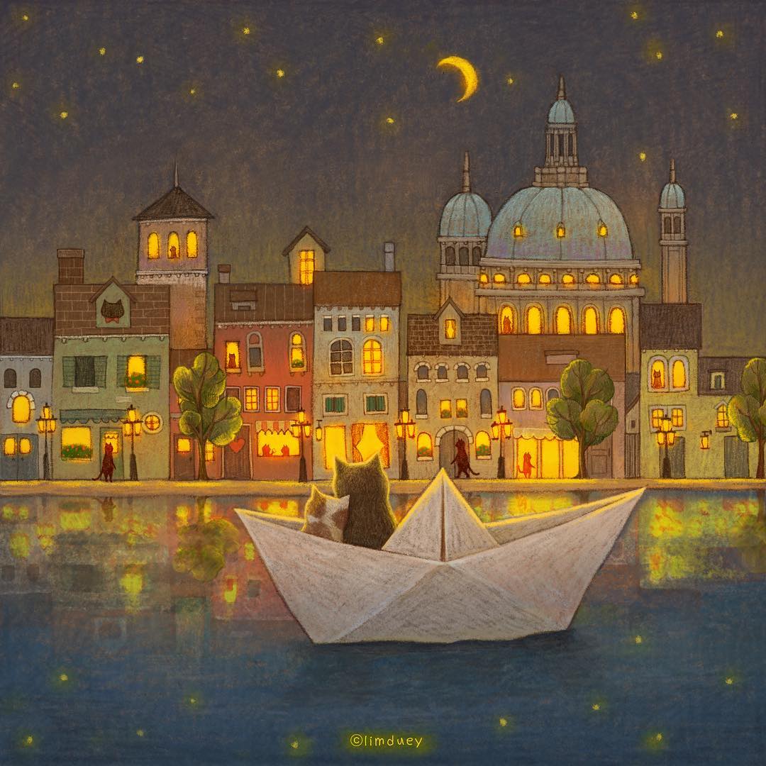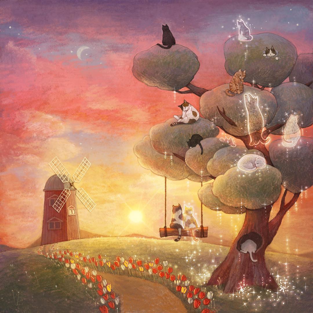貓奴絕對無法抵抗,韓國插畫家筆下夢幻又療癒的貓咪星球,喵~!