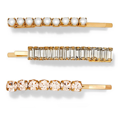 髮夾係 2019 春夏季嘅一大潮流配飾,可以輕鬆提升造型嘅趣味性。呢款以鍍金黃銅鑄造而成嘅髮夾,綴有亮澤嘅人造珍珠、長階梯形切割水晶同圓形切割水晶。單品既可以分別佩戴,亦可以三枚同時配戴~