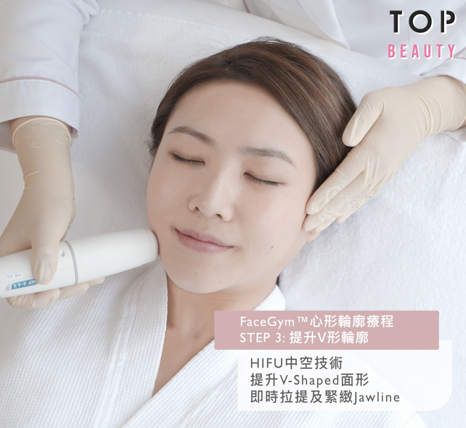 採用高能量聚焦超聲波(HIFU),配置中空技術,集中下半面及雙下巴位置不停來回,精準輸送熱能到皮下深度3至4.5mm,拉緊真皮層及筋膜層(SMAS),激活膠原收縮、增生、重組,收緊及拉提面部線條,踢走包包面,超明顯V-shaped Jawline即時呈現!