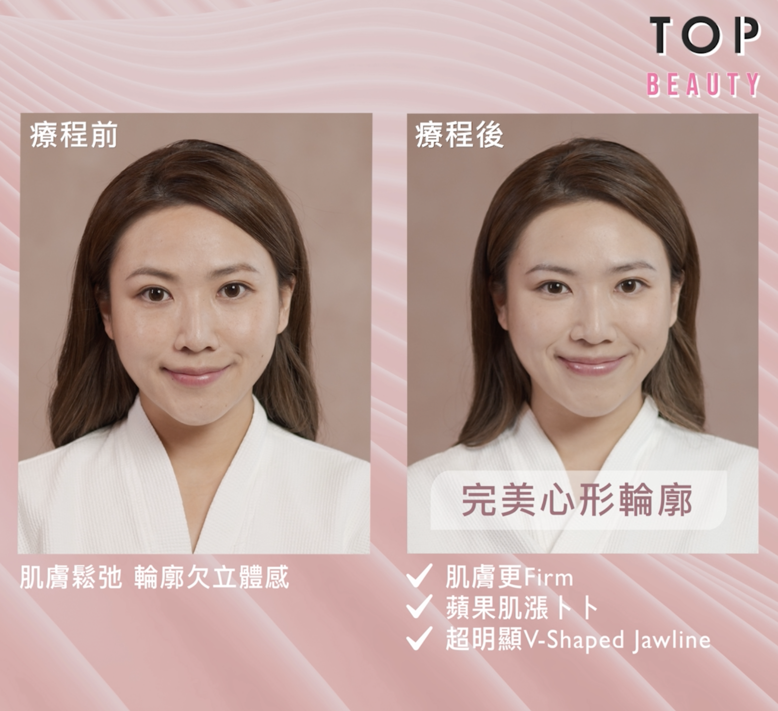 一個療程,美編親證能即時擁有飽滿蘋果肌+緊緻Jawline,從正面看來就是一個令人怦然心動的完美心形輪廓,相信也會令您一定心動萬分!
