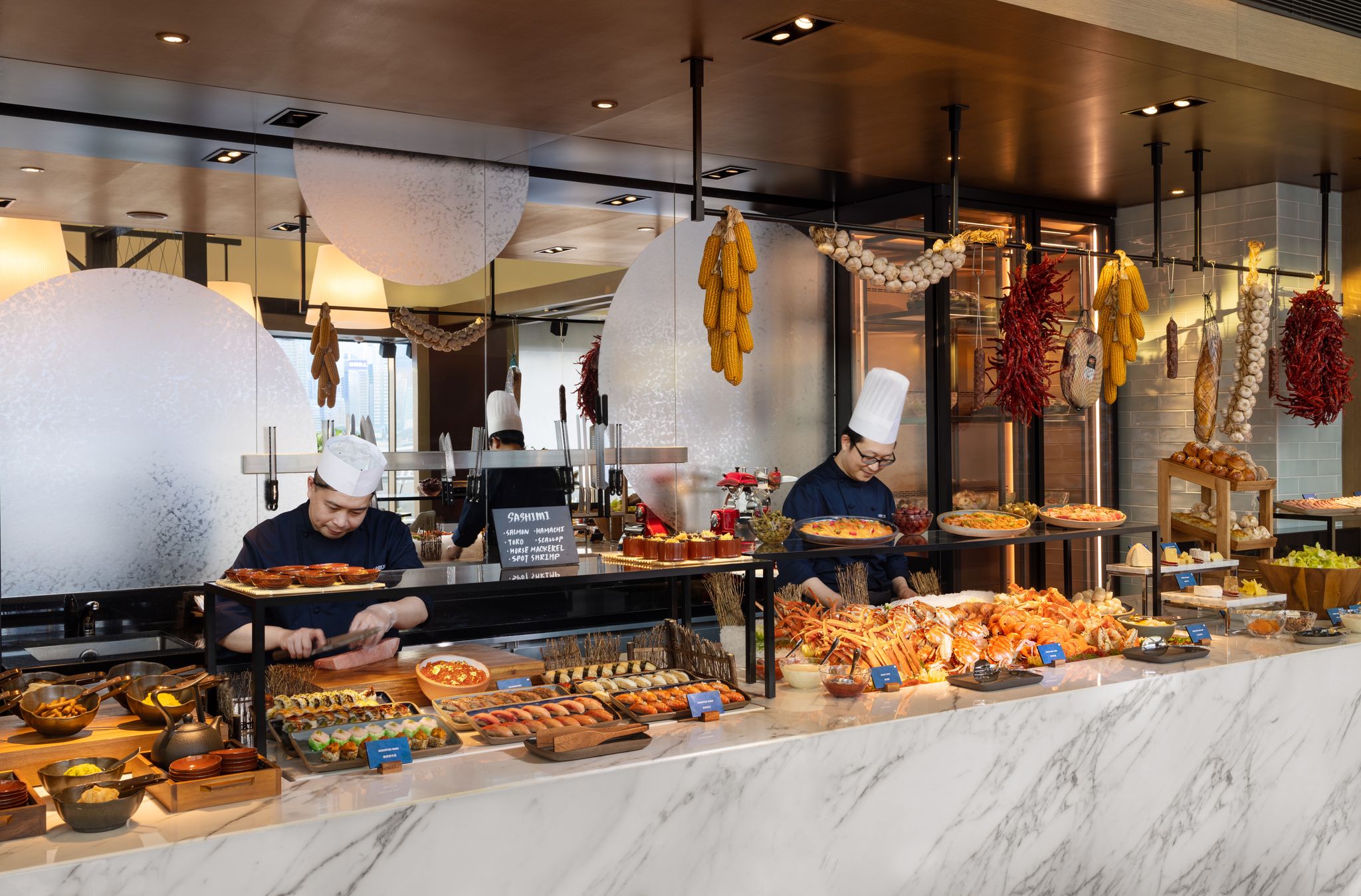 港畔餐廳的沉浸式自助餐體驗集活力、香氣與風味於一身,彙聚西方與亞洲的特色佳餚,透過美食帶母親們走訪各地市集。媽媽們可以安坐在餐桌旁飽覽熙攘往來的維多利亞港,同時欣賞廚師在現場上演的美食劇場,品嚐其即席製作的新鮮定制菜餚,從自助午餐的黃金魷魚到自助晚餐的煙燻辣肉腸焗蠔,讓母親們目不暇給,大飽口福。