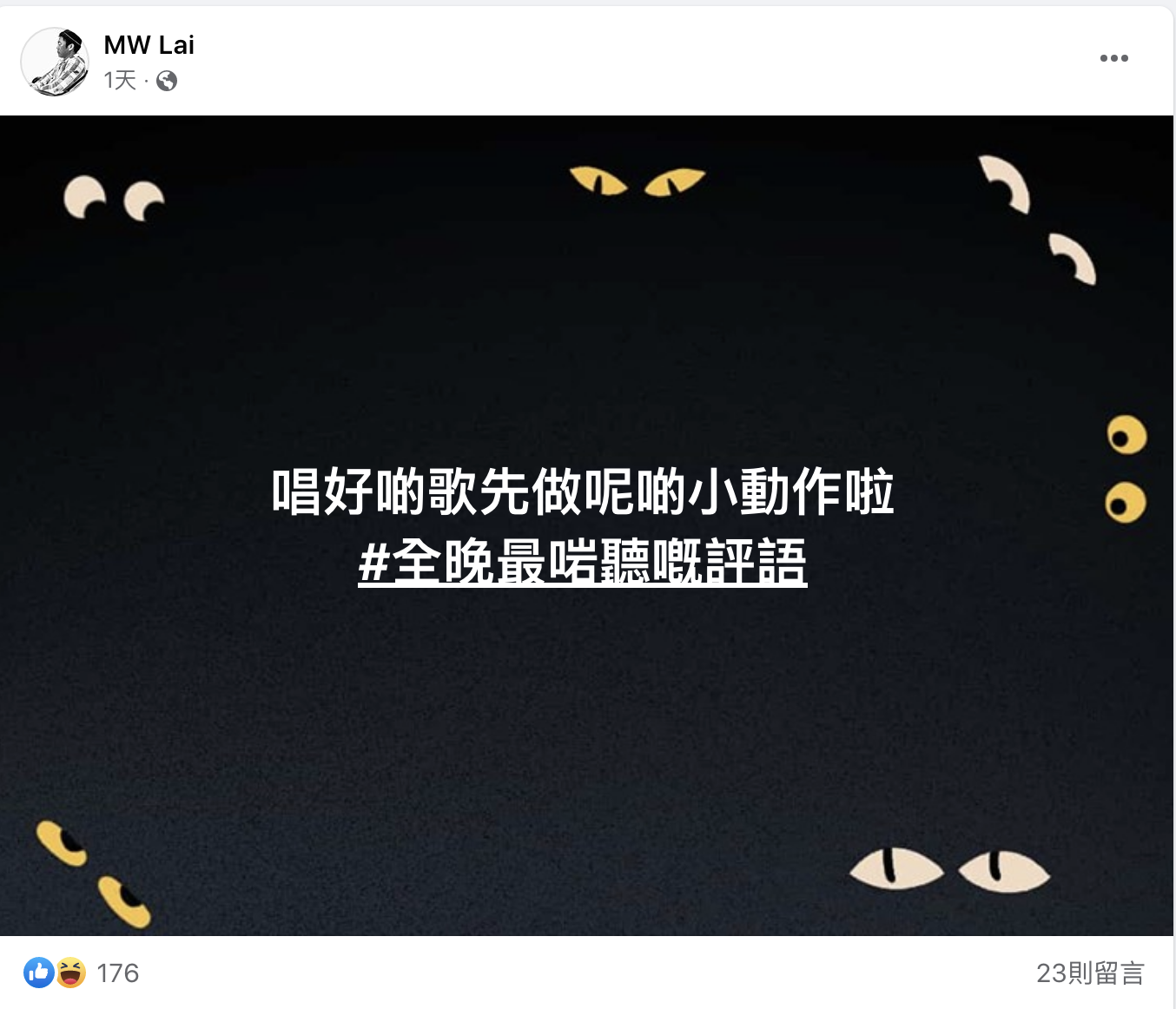 對於隊友的得獎感言,泥鯭就在FB出po撐隊友:「唱好啲歌先做啲小動作啦,#全晚最啱聽嘅評語」其後再連環出Post「多謝說話定係「鼓勵」說話?!WTX?!係咪short X咗?!修哥都講唔出啦」,「嘩,頒唔尷尬,攞唔尷尬,唯有睇嘅尷尬」、「又一個大台誕生」、「依家諗返當年亞太區最受歡迎男歌手真係’”實至名歸”」、「下屆叱咜司儀會點玩呢段感言?」、狠批「又一個大台誕生」、「歌迷會夾份請個寫手同看護畀佢啦」、「建議先做言語治療」,泥鯭再抵死留言:「我想喺度嘥大家小小時間,我要借呢個機會去多謝我隊友」。