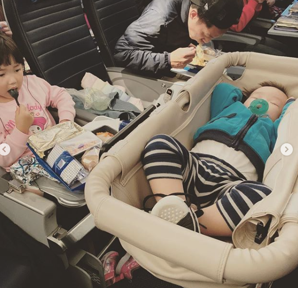 湊住兩個小朋友去旅行真係唔容易,細囝小花生係第一次搭飛機,雖然有bb床,但張頴康仍然手抱囝囝氹囝囝瞓教,成個畫面真係好有愛~