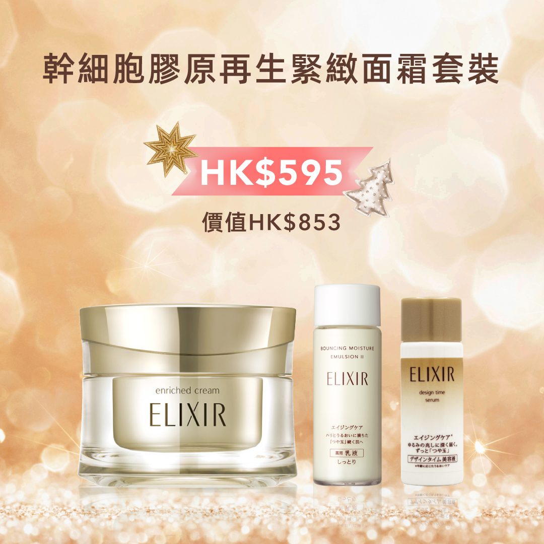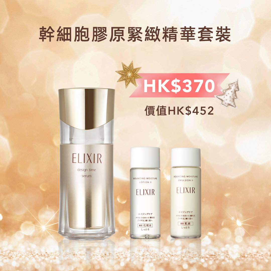 ELIXIR是日本保養圈公認的「膠原專家」,由著名美妝集團資生堂所創立,專門針對女性肌膚的衰老問題,更是連續16年於日本銷售No.11 的抗衰老護膚品牌,集高人氣、高銷售、高口碑於一身。運用40年膠原科研智慧,研創出4種膠原蛋白的獨家配方及膠原科技,成功啟動膠原再生,給予肌膚彈潤「水玉光(つや玉)」。現在,只要Click入 https://bit.ly/3s9OAB3 登記,即可免費換領高純維A重點抗皺精華霜+幹細胞膠原再生緊緻精華試用裝,親身感受膠原再生、去舊迎新的力量。