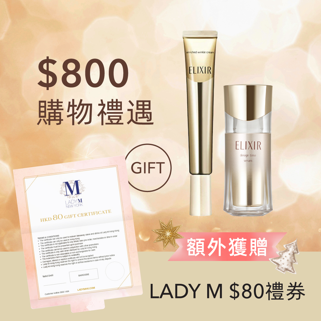 適逢聖誕節將至,一向貼心的ELIXIR更為大家準備了多款結合不同皇牌產品的聖誕限定套裝,讓你以低至7折的價錢入手到「心頭好」。現在選購ELIXIR產品或套裝滿$800,更可獲贈Lady M禮券乙張(價值$80),讓你與所愛、閨蜜一同度甜美的聖誕。溫馨提示,所有聖誕限定套裝只限銅鑼灣松本清獨家發售,切勿去錯!