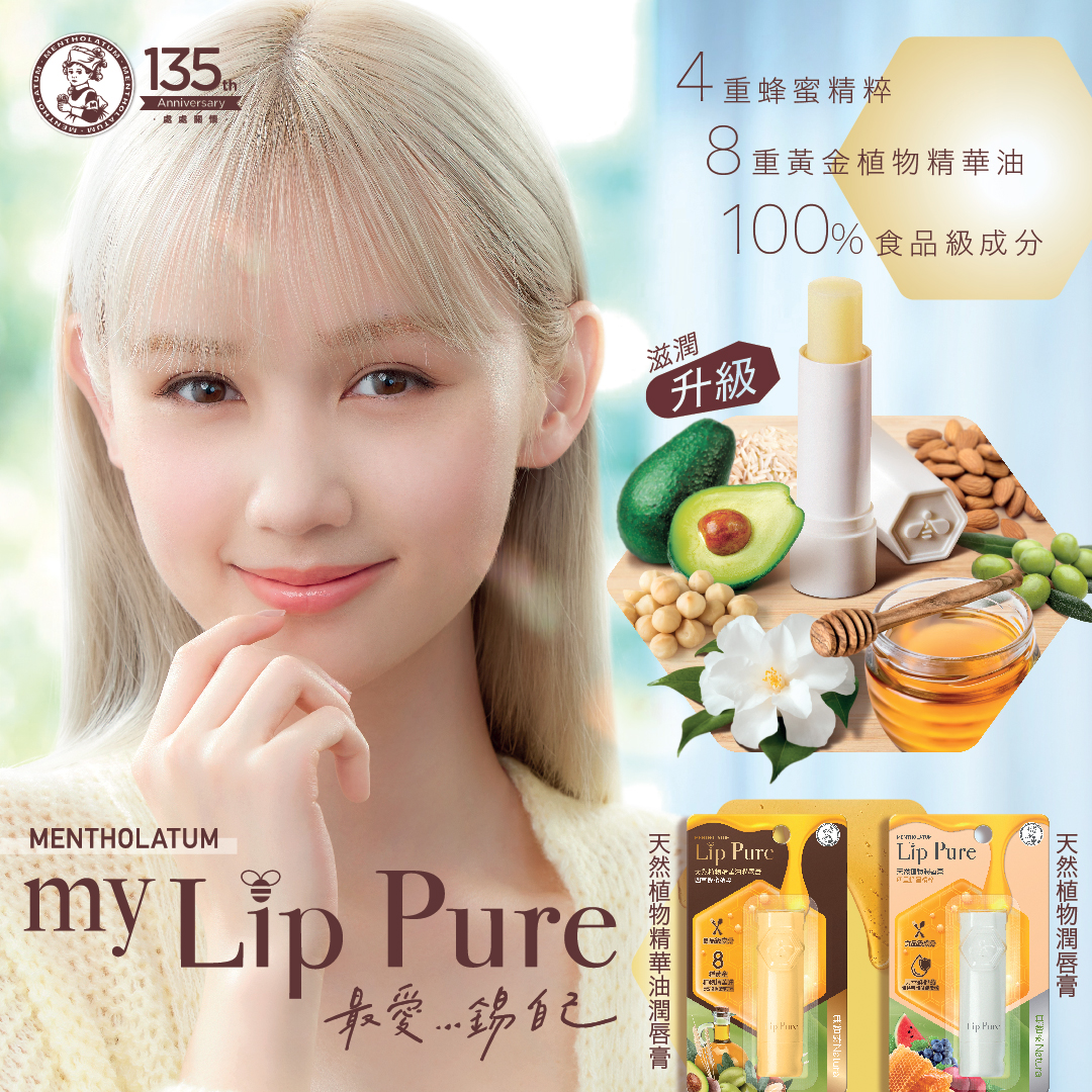 踏入秋冬,唇部護理更不可以馬虎,如果妳都想擁有「半糖笑容」,就要學甜美女神Nancy Kwai一樣,時刻以曼秀雷敦新升級Lip Pure潤唇膏滋潤雙唇,才能保持柔軟飽滿,立即入手!