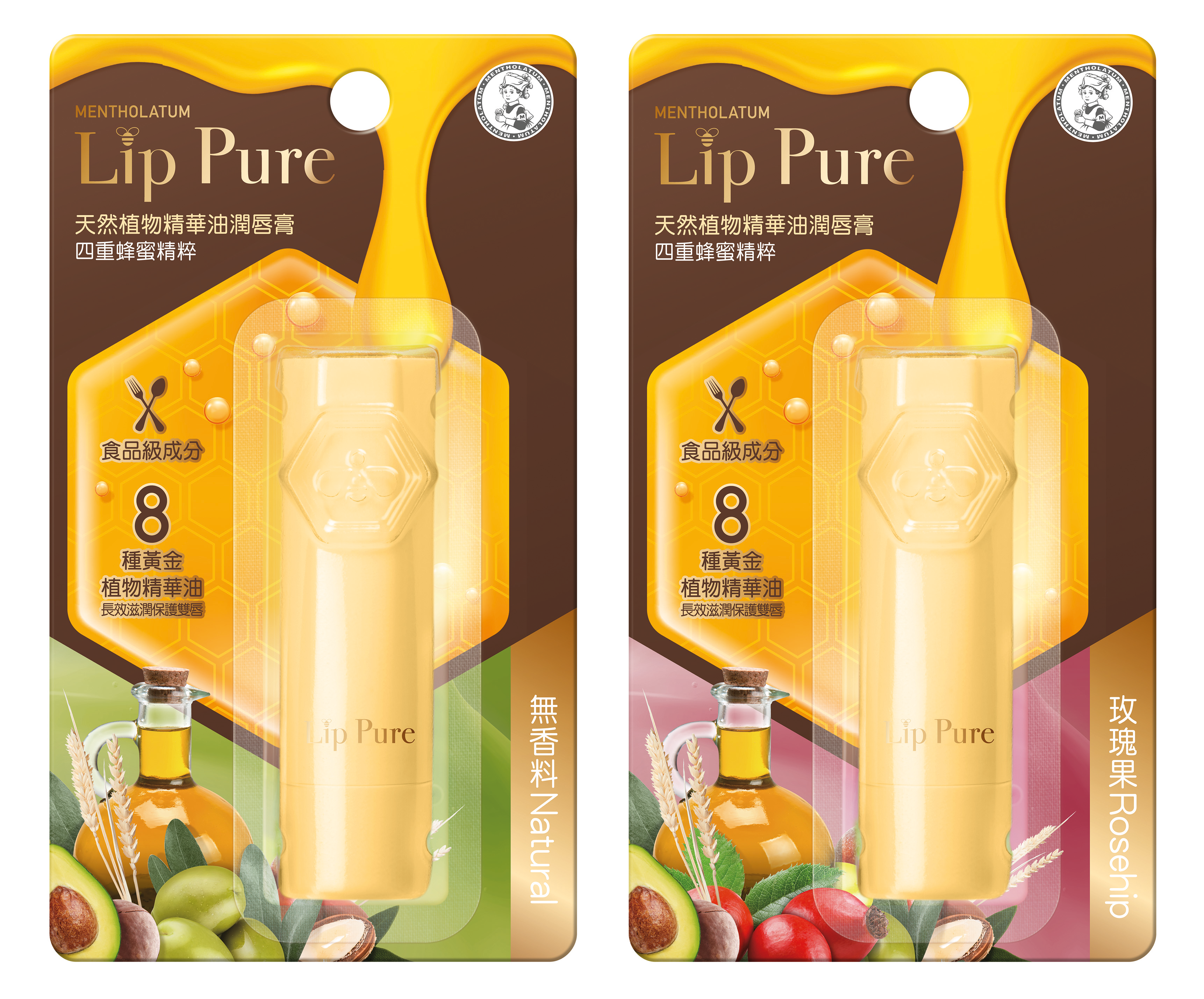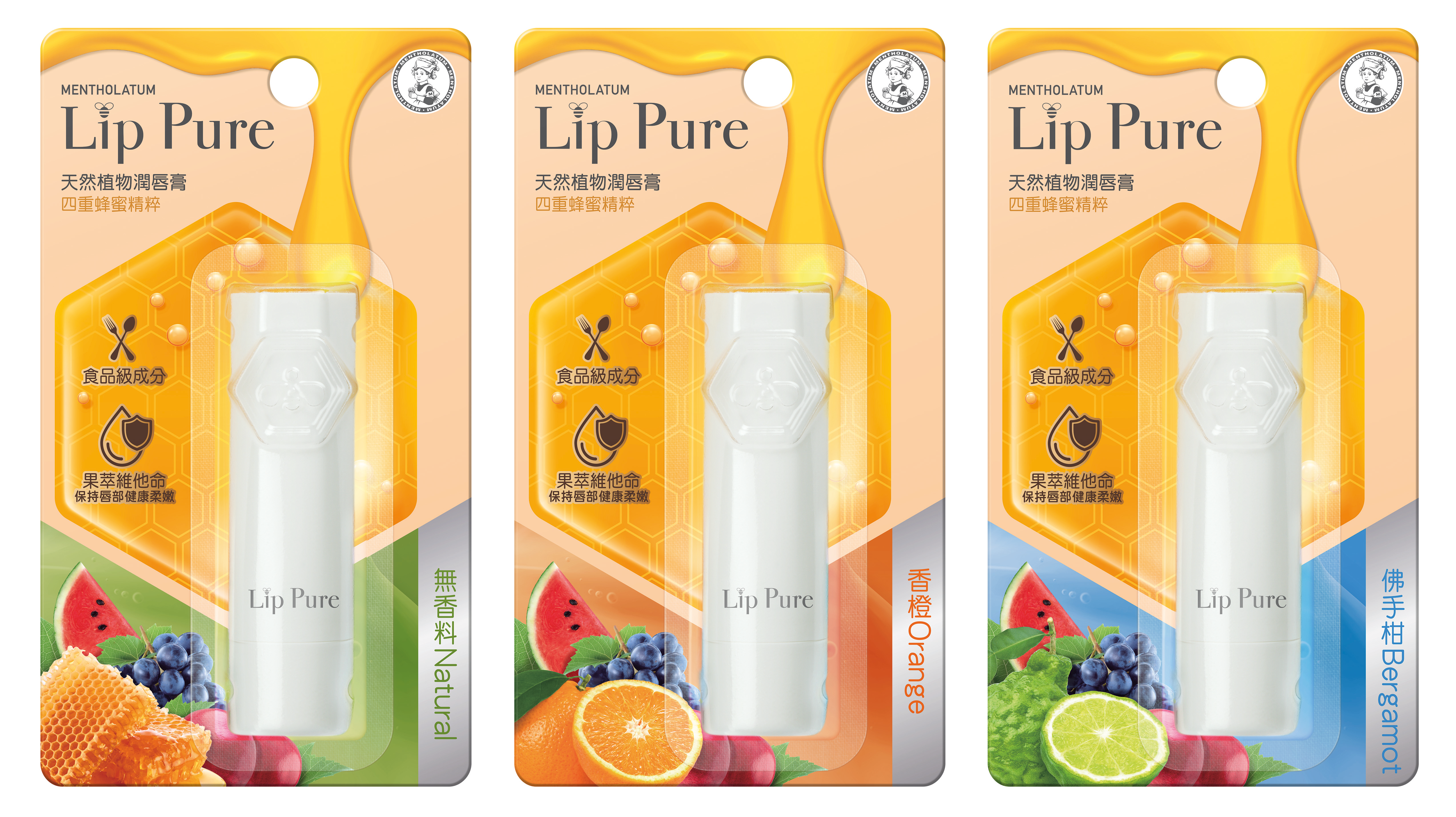新升級Lip Pure潤唇膏共推出兩款系列,包括天然植物精華油潤唇膏(無香料、玫瑰果),以及天然植物潤唇膏(無香料、香橙、佛手柑),兩者可以日夜交替使用,實行「日薄塗、夜厚敷」的護唇原則。