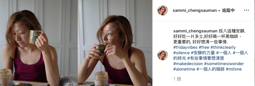 另外又有帖文寫下:「有時想一想, 回望這麼多年工作歴程真不容易. 高高低低崎嶇挫折常有. 從不變是一種對自己無限的自我要求. 一種...自我苛刻。 因為我選擇了或許是最愚笨的一套: 吃苦. 也許.....我自知從不生來卓越,沒有擁有不勞而獲的天資, 所以更需要關關努力. 」