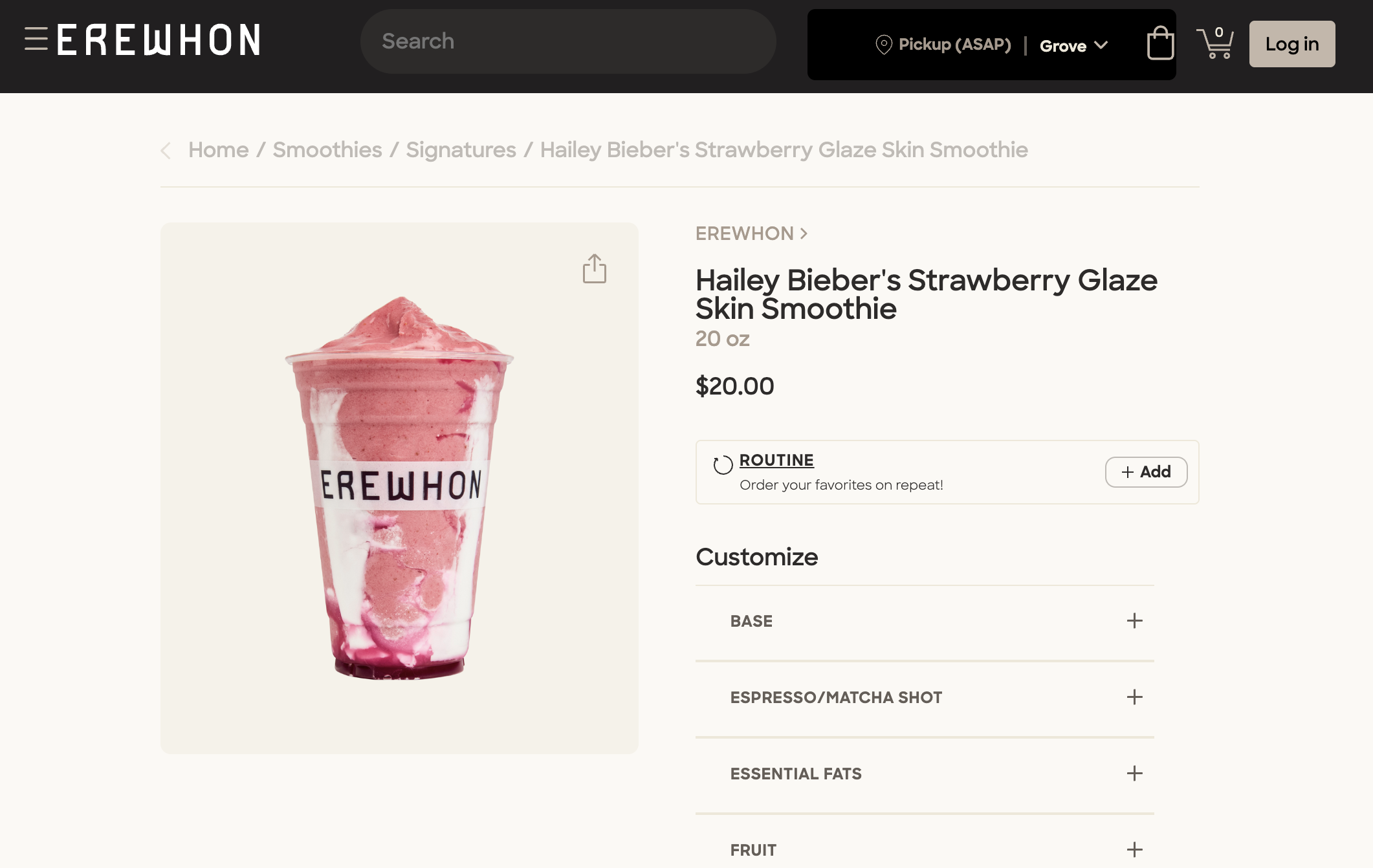 如果你一直有留意時尚圈的健康飲食潮流,這款由Hailey Bieber與「超市愛馬仕」Erewhon聯名打造的Strawberry Glaze Skin Smoothie釉光肌奶昔,肯定聽過!自推出以來熱度持續高企,即使一杯售價達18- 22美金,仍不乏支持,至今已賣出超過25萬杯,不僅風靡歐美,在亞洲也圈粉無數,堪稱飲食界的「超級網紅」!