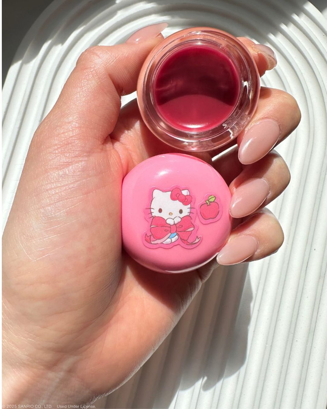 The Crème Shop 於今年春季推出「Gloss Jelly Tinted Peptide Lip Collection」系列唇膏。這是一款柔潤甜美的有色潤唇膏,擁有不黏膩、高光澤的配方,可打造光澤水潤的唇妝效果。其中 Hello Kitty 包裝對應的色號為 #Berry Cherry(莓果櫻桃),質地滋潤,也可作為腮紅膏使用。
