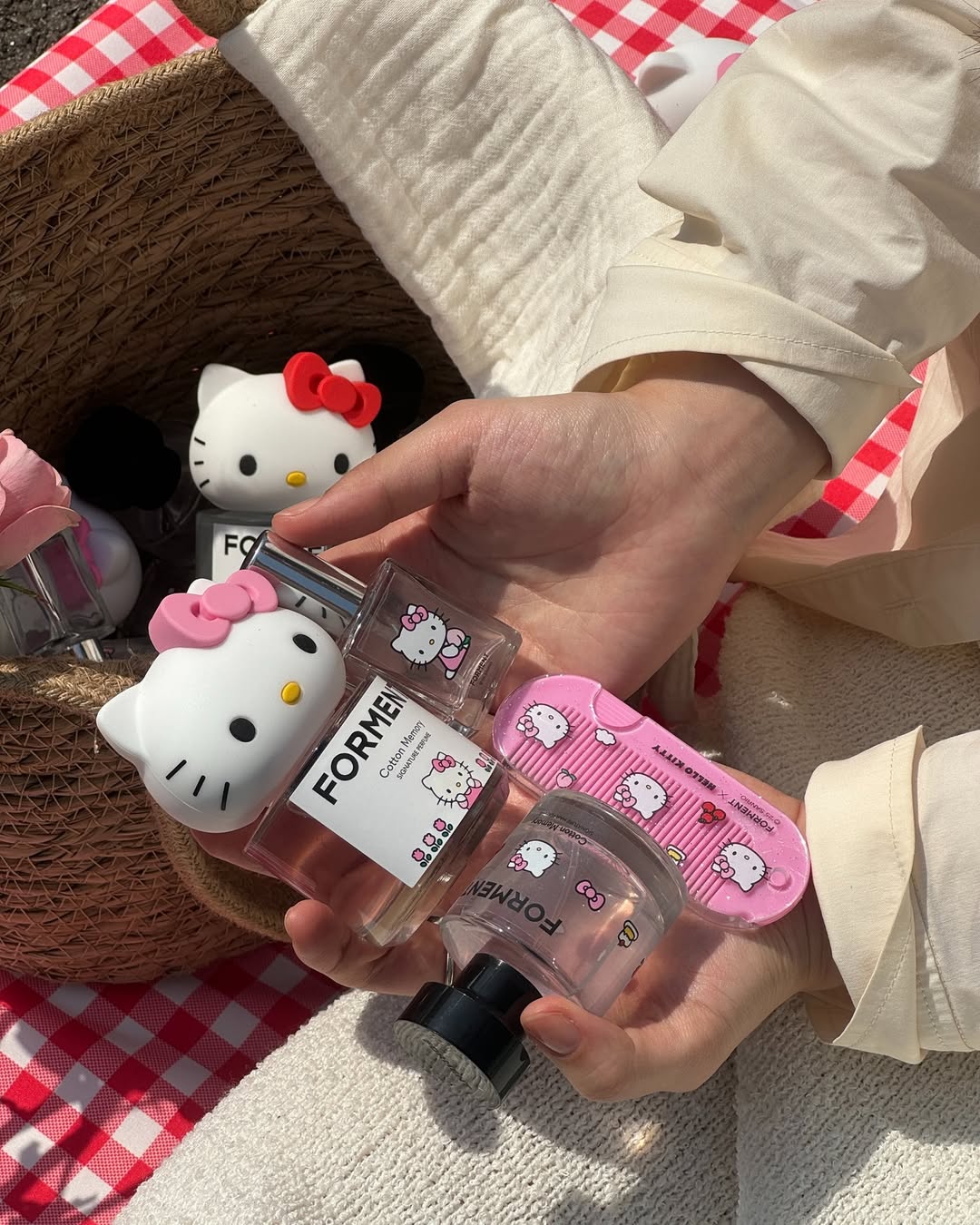 韓國香氛品牌 Forment 與 Hello Kitty 聯名推出2款限定香水,瓶蓋設計為可拆卸的 Hello Kitty 公仔。此次聯名除了香水,還包含梳子、化妝包、香髮噴霧等特別周邊,簡直是 Kitty 迷的最愛!