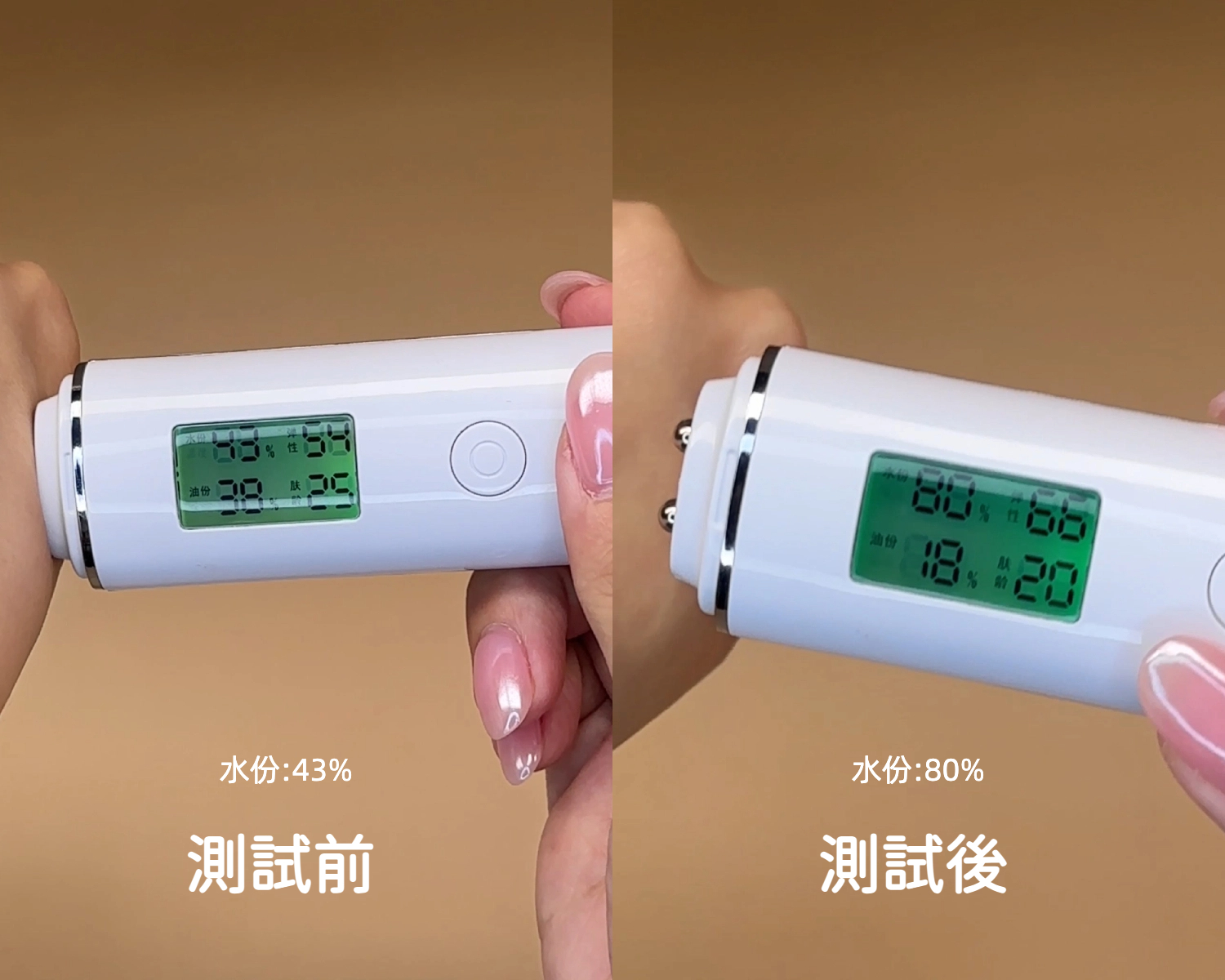 噴前肌膚只有43%水分,噴後即時飆升至80%,足足升了37%!