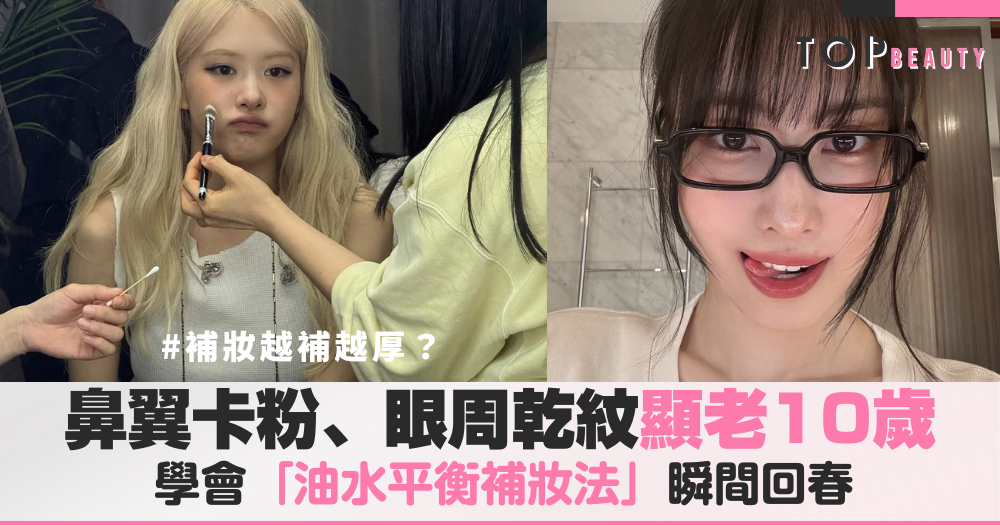 補妝越補越厚?鼻翼卡粉、眼周乾紋顯老10歲!學會「油水平衡補妝法」瞬間回春
