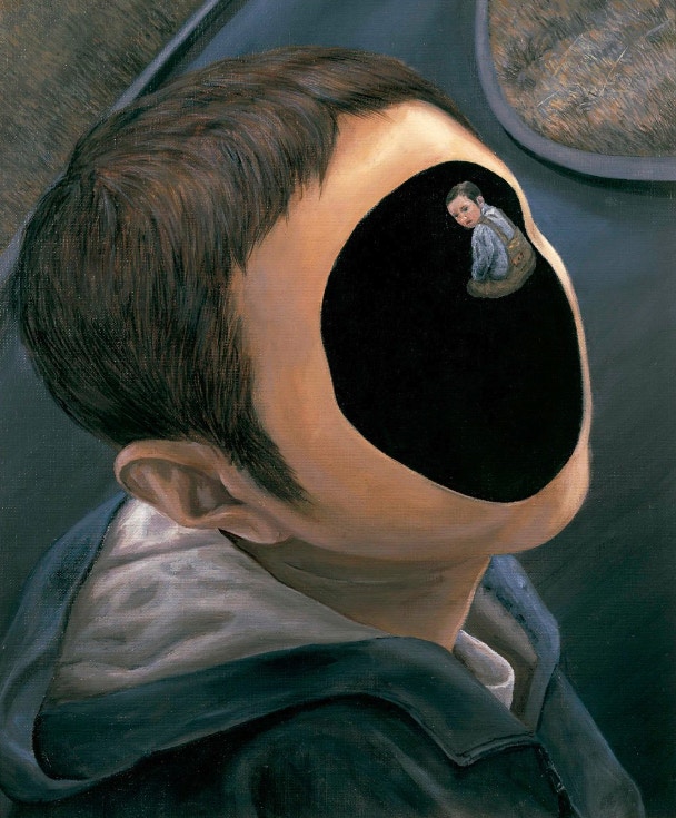 2003的作品,一張沒有五官的臉孔,內藏了一個小孩身影。可能每個人都有一顆童心於體內,但因社會的現實和殘忍,大家只好背著良心遵從社會要求。