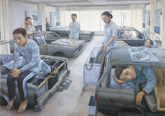 醫院作為背景,一個個愁眉苦臉的男病躺在汽車似的床上。反映日本男性愛飆車到連性命都不要的地步。這好比人們玩物喪志的情況,這不單只有日本才出現,投入也要控制得才可以。