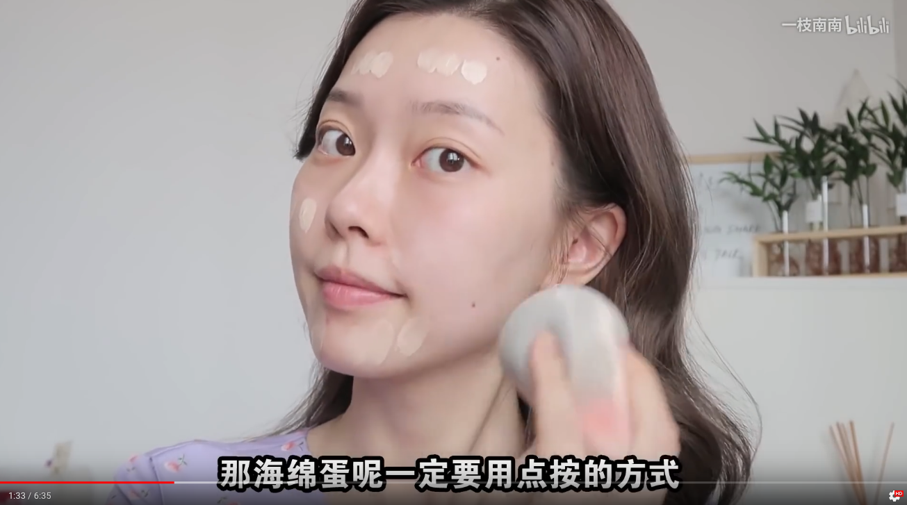 不想妝底有厚重的感覺,一定要用海綿上粉底,為了讓毛孔通通隱形,要把粉底推出毛孔內填滿,所以要用點按的方式上粉底,千萬不要粗糙地向外推!上散粉時要用化妝掃以滾動方式在臉上定妝,不要亂刷一通把剛上好的粉底都刷掉啊!