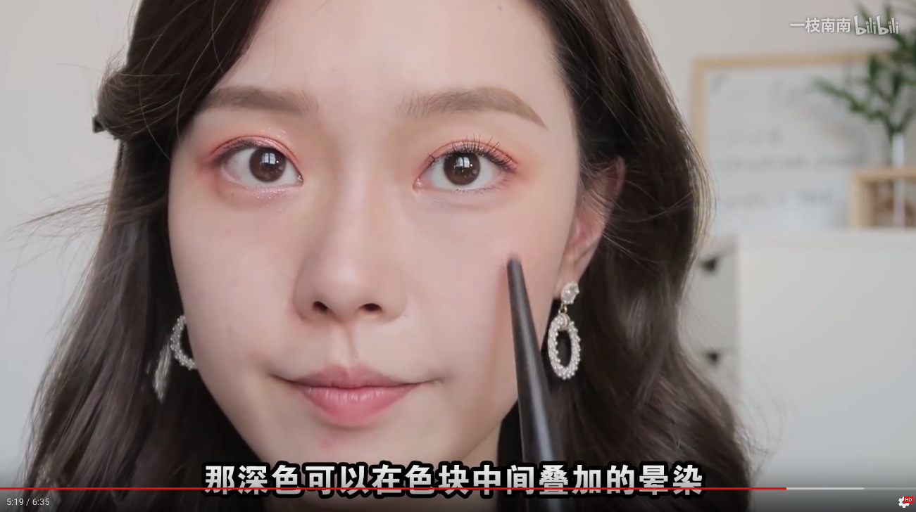 一般女生只會用單的胭脂色號,但這樣會使呈現效果不自然,又沒有收細五宮的效果,最合適的就是準備2個深淺不一的胭脂,把淺色的大範圍掃在蘋果肌上,深色的可在中間疊加暈染,這樣就會有自然的好氣息啦~