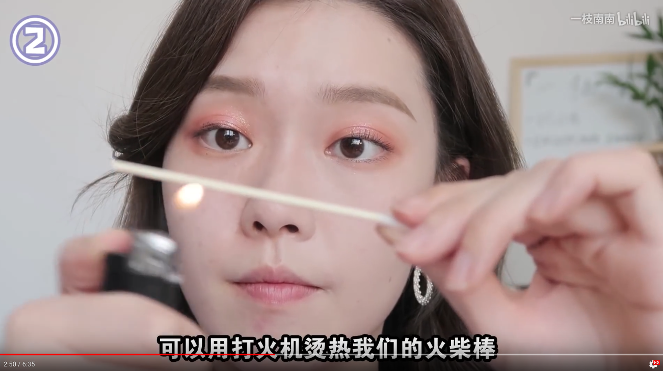 想讓睫毛更加定型,可以打火機燒一燒小木棒,再為睫毛定型。