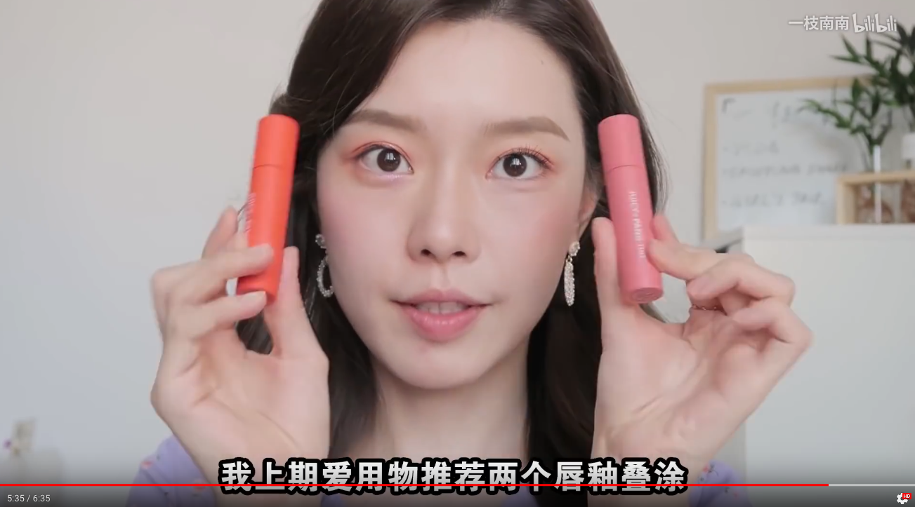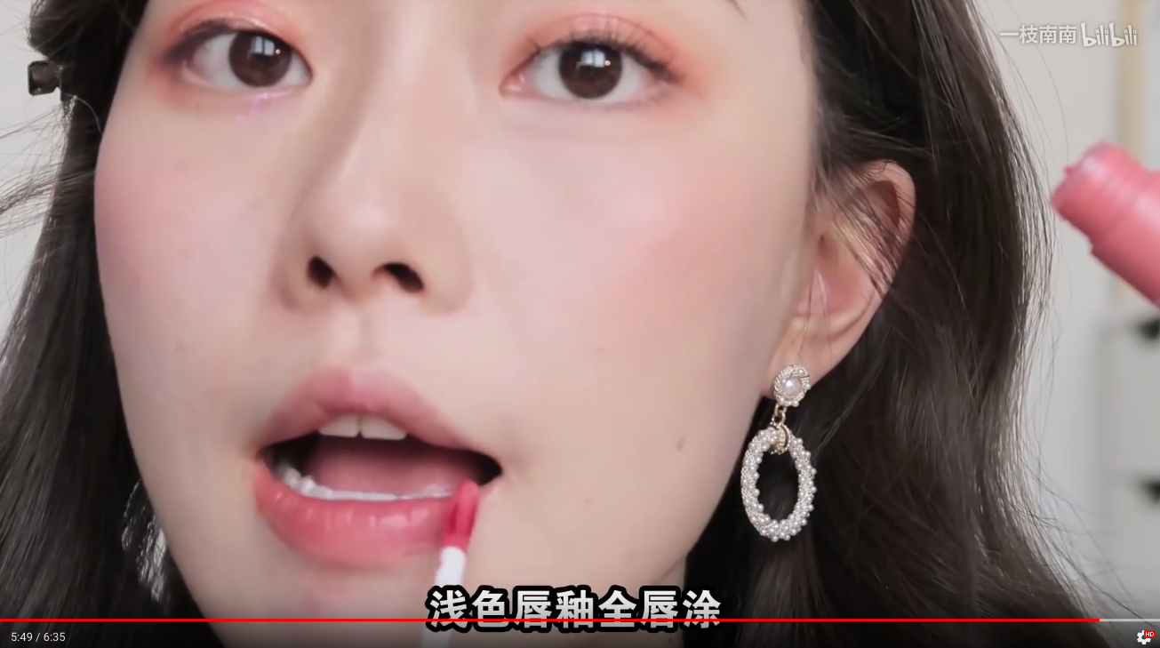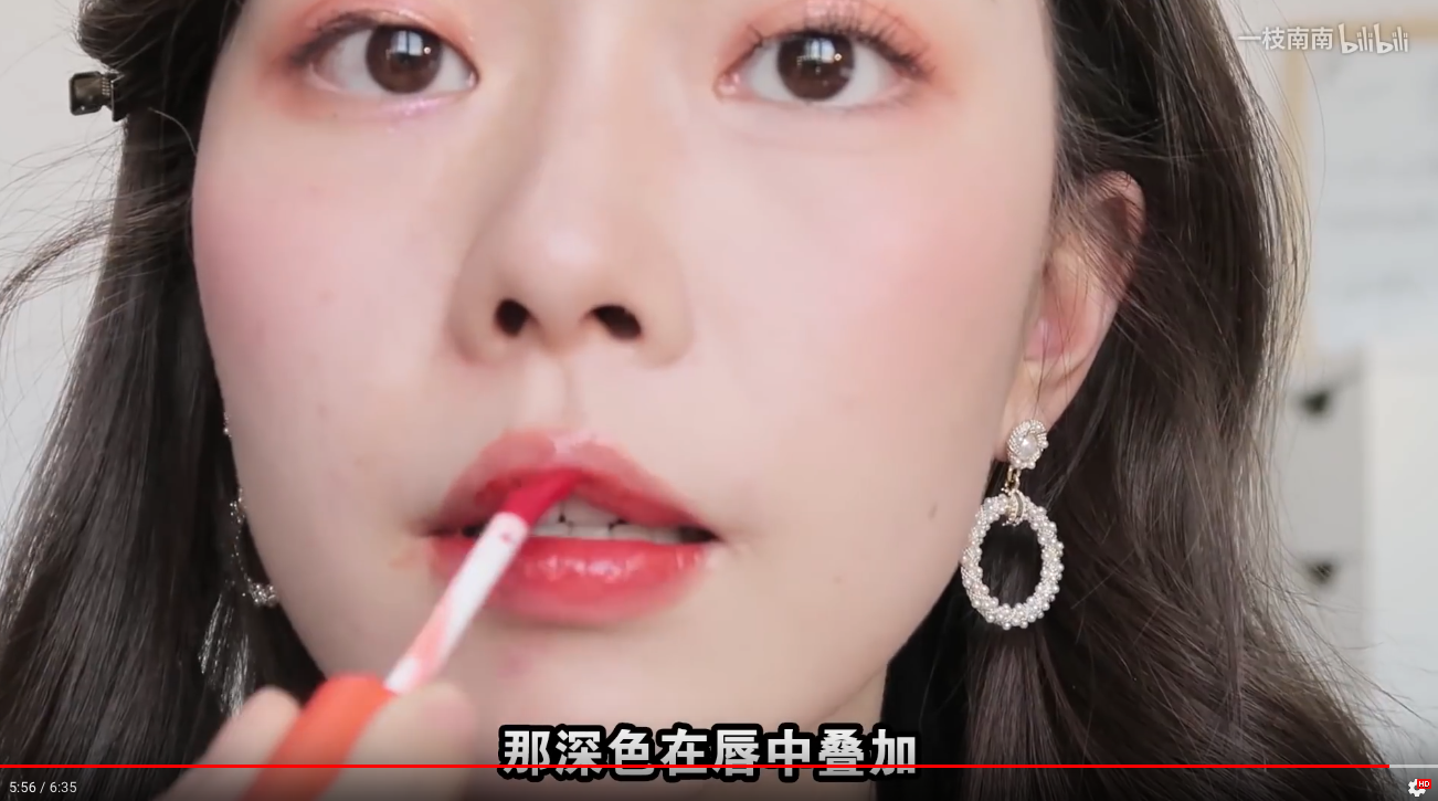 亞洲女生大多不適合歐美那樣把唇膏大範圍塗抹,所以要準備2支深淺不一的唇膏,淺粉紅色的用來塗滿嘴唇,深色在中間作混染用,漂亮的花瓣唇妝就完成啦!