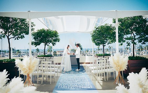 黃翠如和蕭正楠的婚禮在峇里島南面懸崖頂的Six Senses Resort進行。五星級酒店Six Senses Uluwatu是去年才新開幕的酒店,在歐美地方十分受歡迎,並於2018年得到世界最佳酒店品牌。他們在這舉行婚禮大概因看準了酒店旁邊就是一覽無遺的印度洋,天和大海連成一線的風景令婚禮相片加分不少,同時都是準新人們喜愛的渡蜜月地方。就以他們婚禮為例,只需要簡簡單單在戶外的一片草地上,用上乾花做裝飾,已經成功令整個婚禮格調提升。