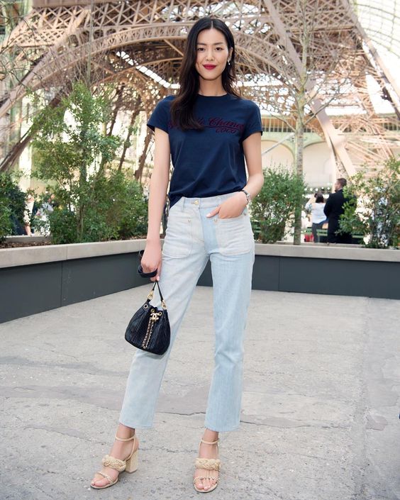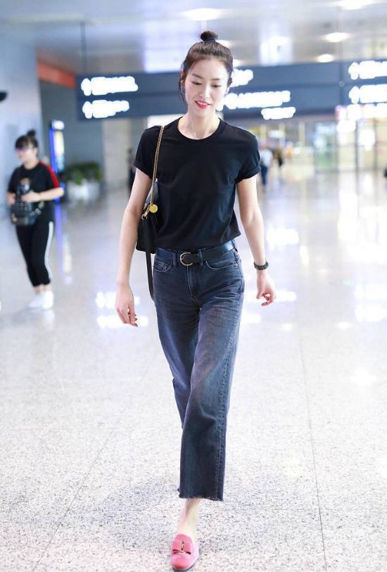 國際名模劉雯也是喇叭牛仔褲的愛好者,178的她單穿一件T-shirt加牛仔褲已經很好看了!
