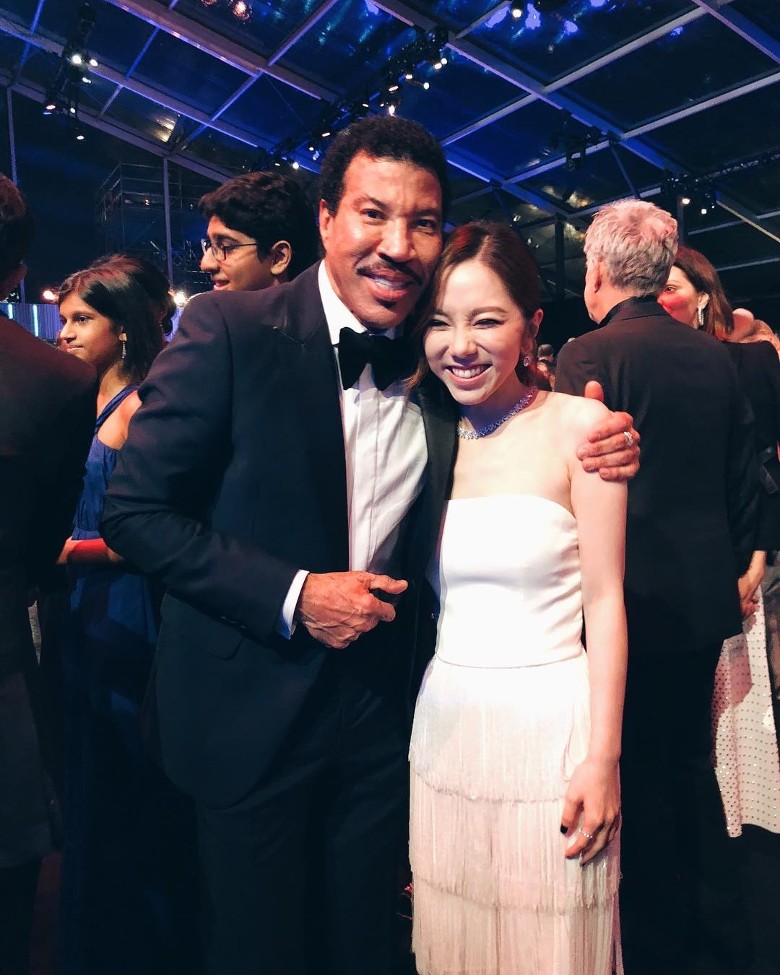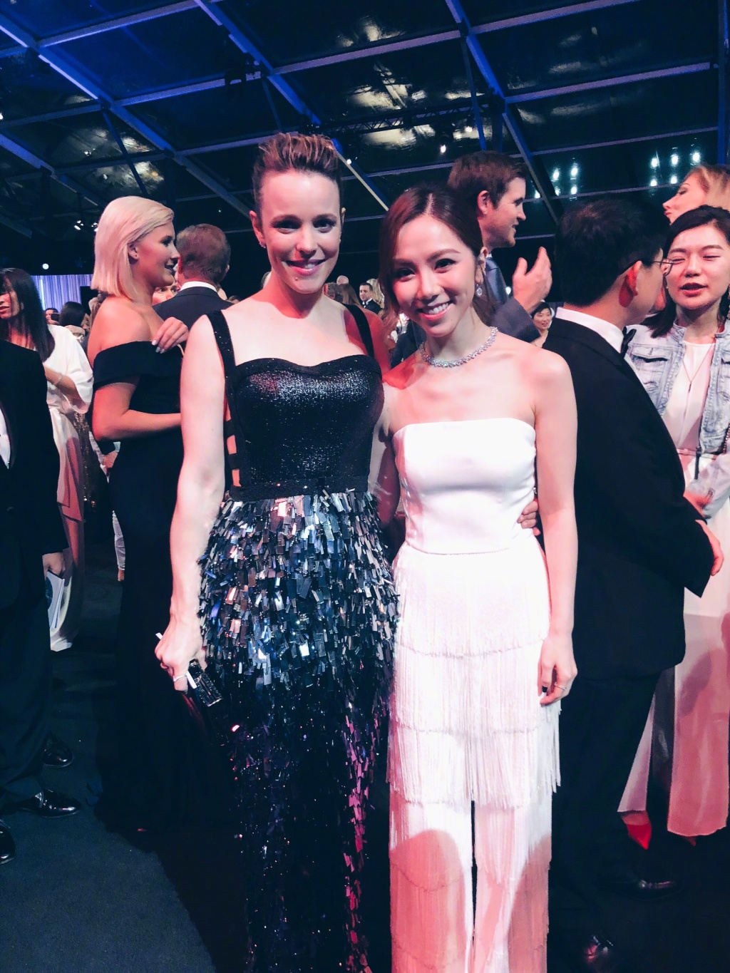 當晚G.E.M.逐一跟國際巨星合照,當中包括美國歌王Lionel Richie、Orlando Bloom、Rachel Adams!