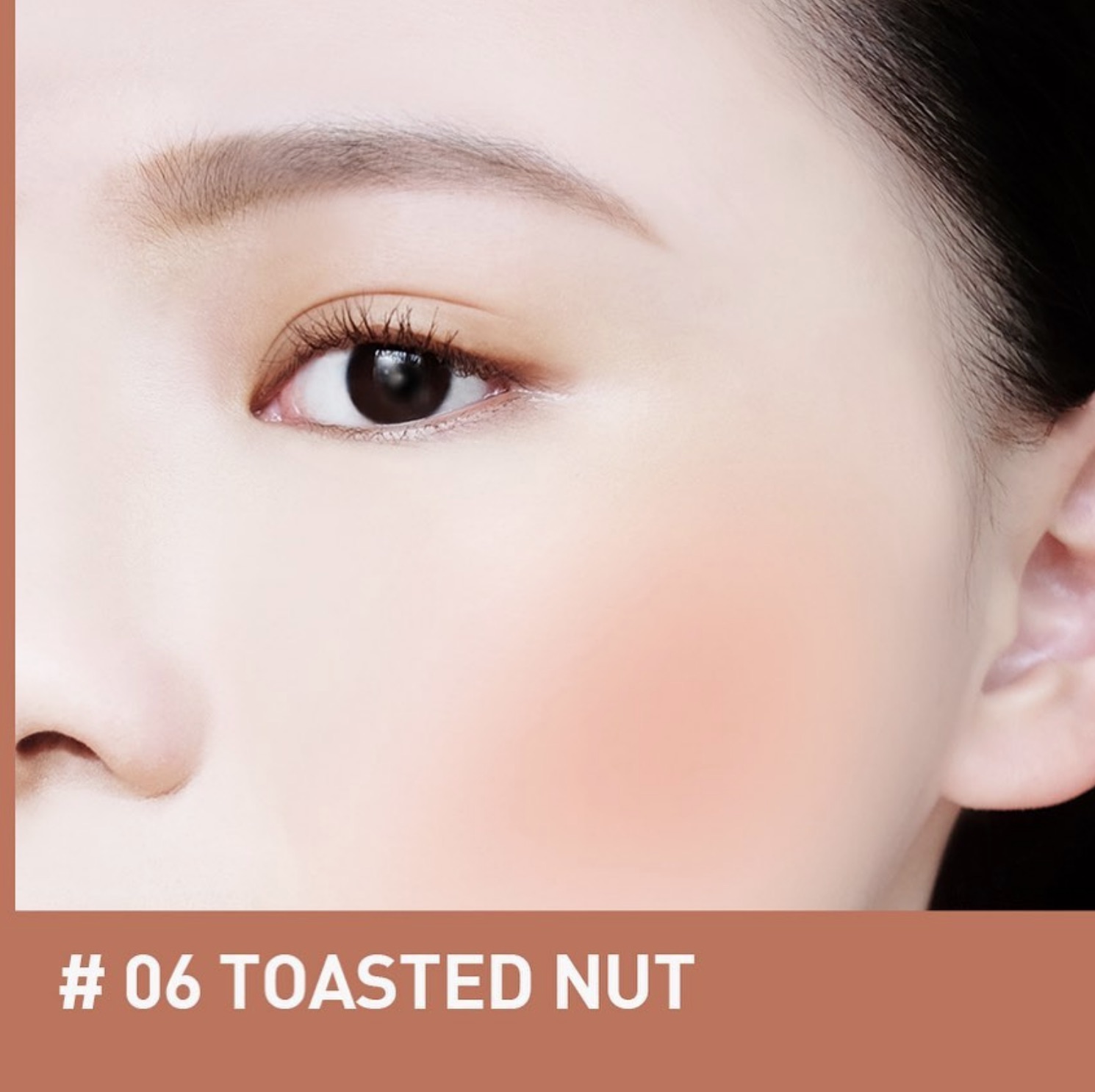 至於,# 06 Toasted Nut係今年流行嘅顏色,上喺兩頰有修容嘅效果,而細緻嘅珠光亦令蘋果肌視覺上提光~