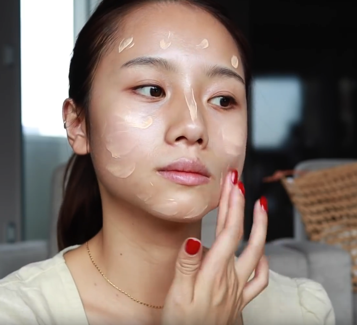 如題所講,粉底液在妝容裡成為了「可有可無」的一環,所以即使還是無可避免的想要多一點的「安全感」,可以像伊原葵一樣,取少量的粉底液,點在五個位置:額頭、鼻樑、兩邊臉龐和下巴,再用手指的溫度推開。一種顏色的粉底就足夠了。