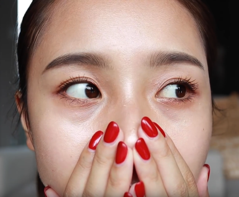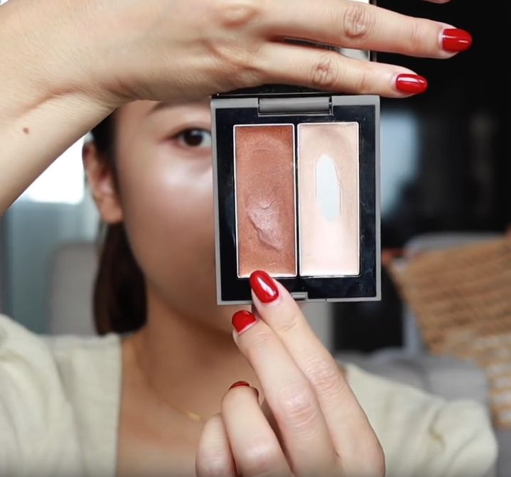 伊原葵則使用了一淺一深的香檳色眼影,同樣用手指先塗抹淺色在眼窩,然後將深色塗抹在平常畫眼線的位置。
