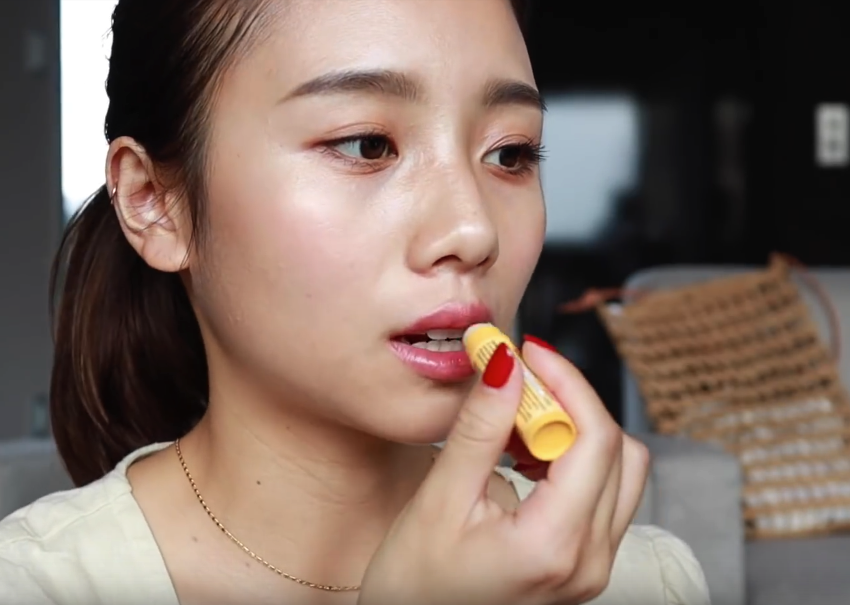然後再多搽一層潤唇膏,暈開底下的唇色。