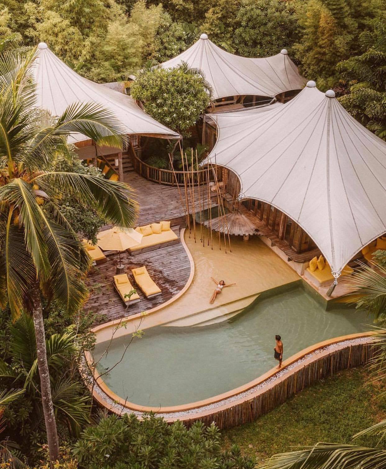 而閣骨島上最有名的酒店,必定是Soneva Kiri,是不少網紅的首選酒店。當中一定要數其懸掛在樹上的餐廳,設計靈感源於孩童無憂無慮的本質,有一種坐在熱氣球上的感覺,讓你可以與戀人共進餐點的同時,飽覽海洋的絕美景色,而服務員則是透過懸綁鋼索滑翔送餐,非常有特色。