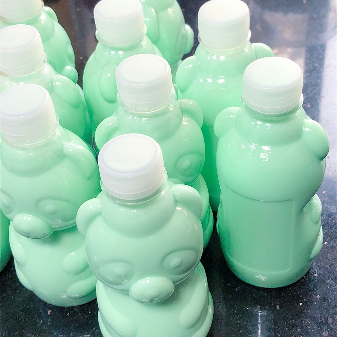 至於飲品方面,同樣都是以Tiffany blue顏色為主調,圖中的就是薄荷Latte和薄荷牛奶,不知道妳又會否想點一杯試試看呢?café偶爾都會參加一些甜品展,於是更推出了精緻包裝的飲品,熊熊膠樽那個非常吸睛!