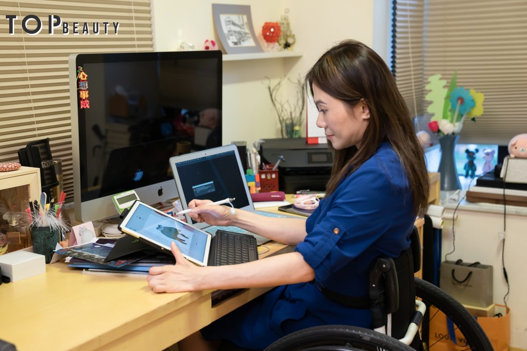 學習「重新做人」的路途中,Rabi沒有自怨自艾,反而努力建立自己的事業,「即使我行動不便,我仍有自己想做的事情,我仍樂於去見識這個世界。」重新投入社會後,Rabi開始做回「老本行」,即使雙手因車蝸而令活動能力受限,她仍堅持工作,創立自己的個人事業,如今已更擁屬於自己的設計公司。