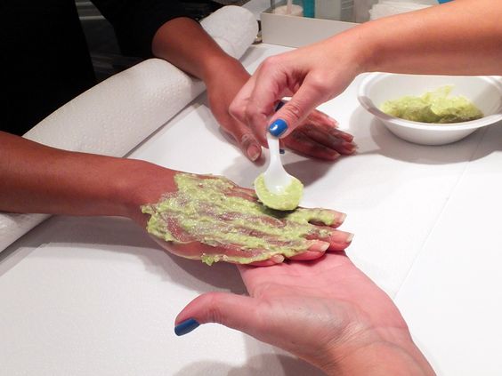 1.先把1/2個牛油果壓爛,加入適量的牛奶或一茶匙蜜糖,調製面膜的碗中攪拌成泥狀。