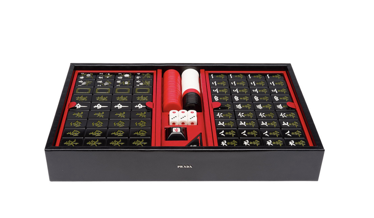 講到香港人最喜歡的「Party Game」怎能沒有麻雀!Prada 去年亦推出了一款奢華的特製麻雀,採用了上乘的 Saffiano 皮革材質包裹丙烯酸樹脂製成,黑色底搭配金色字盡顯高級感,還配有骰子、籌碼等配件,包裝盒同樣採用 Saffiano 皮革製作,從裡到外都是極致奢華,定價為 $28,850 港元。