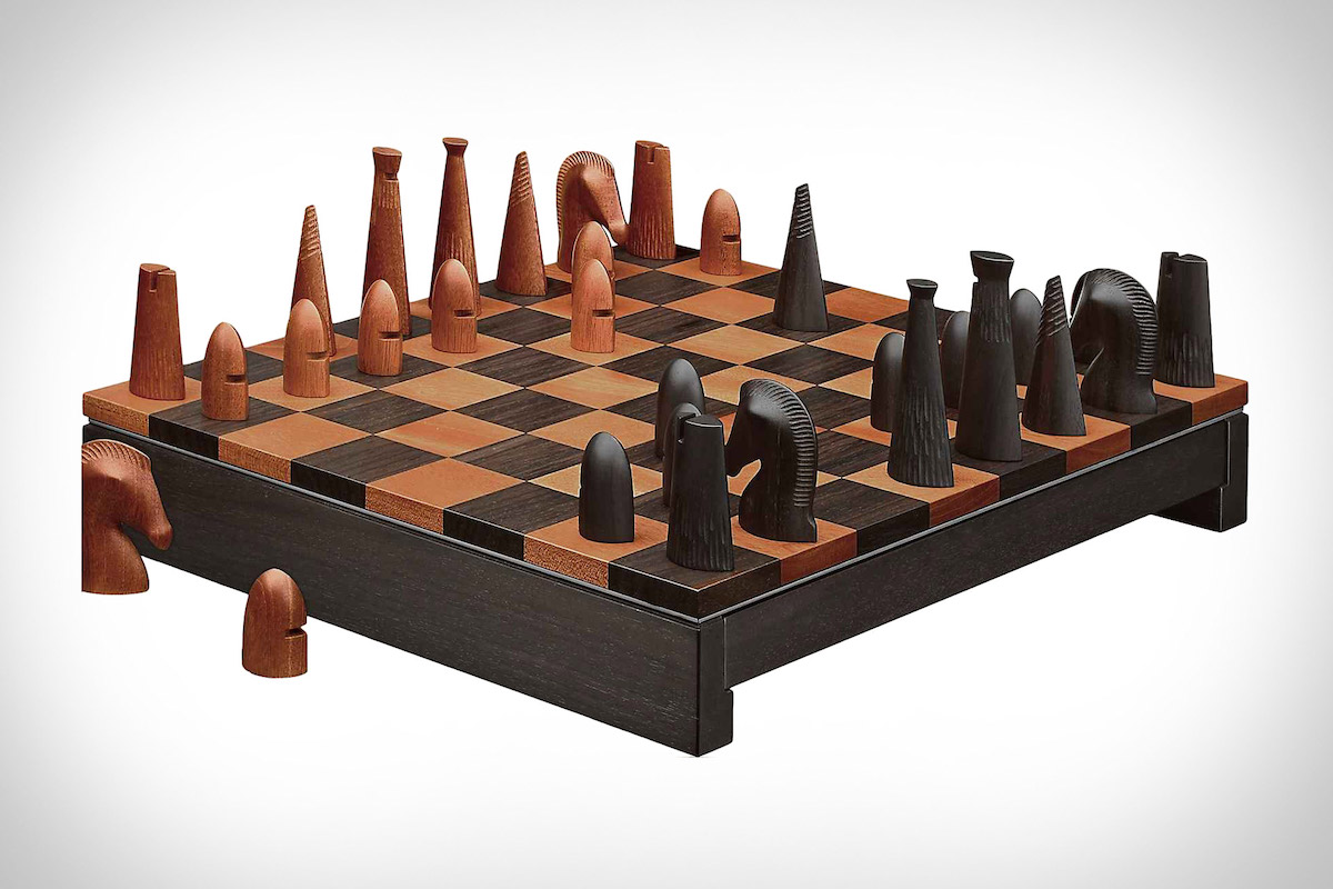 Hermès推出的這組象棋太美了吧!棋子用上印尼桃花心木、德國橡木兩種木材,製作出深淺兩種自然色調的棋子,棋盤旁邊更有皮革手拉的小抽屜,讓玩家擺放棋子,細節精緻又具高級的流線型設計感,定價$7,050美元,絕對值得珍藏!